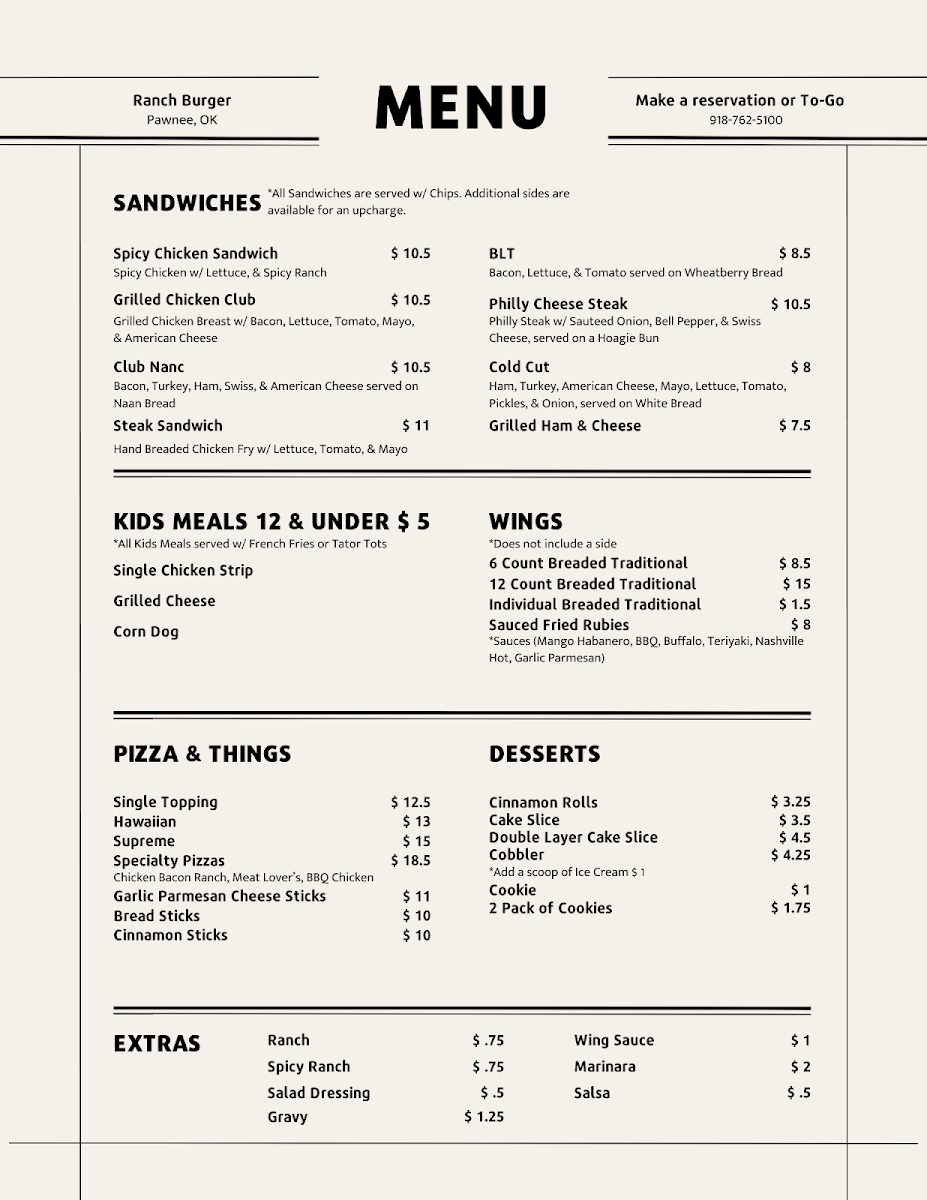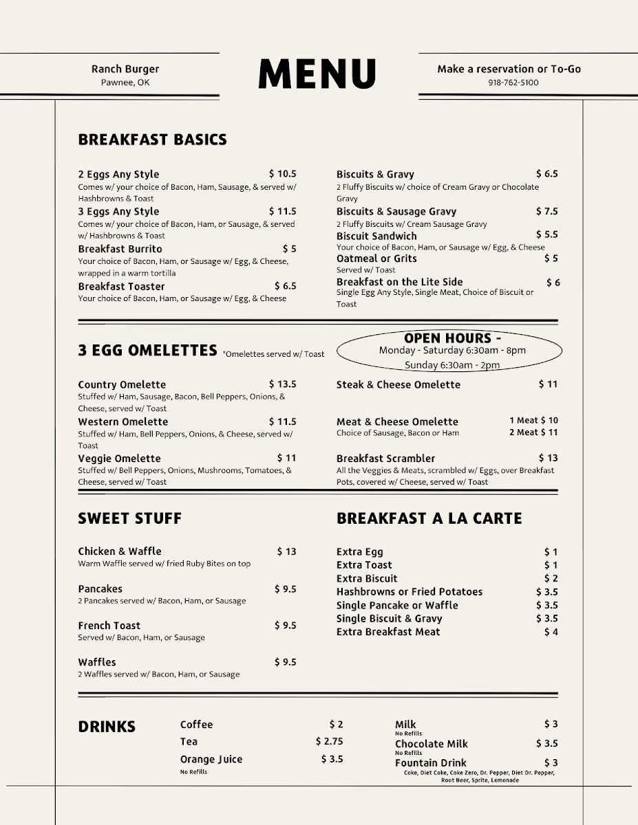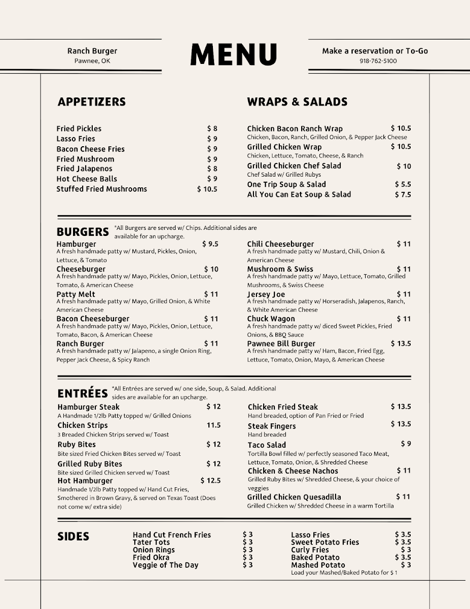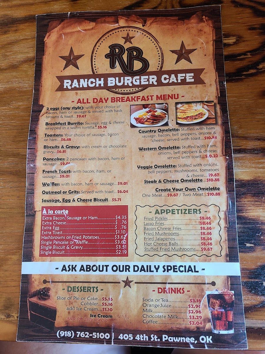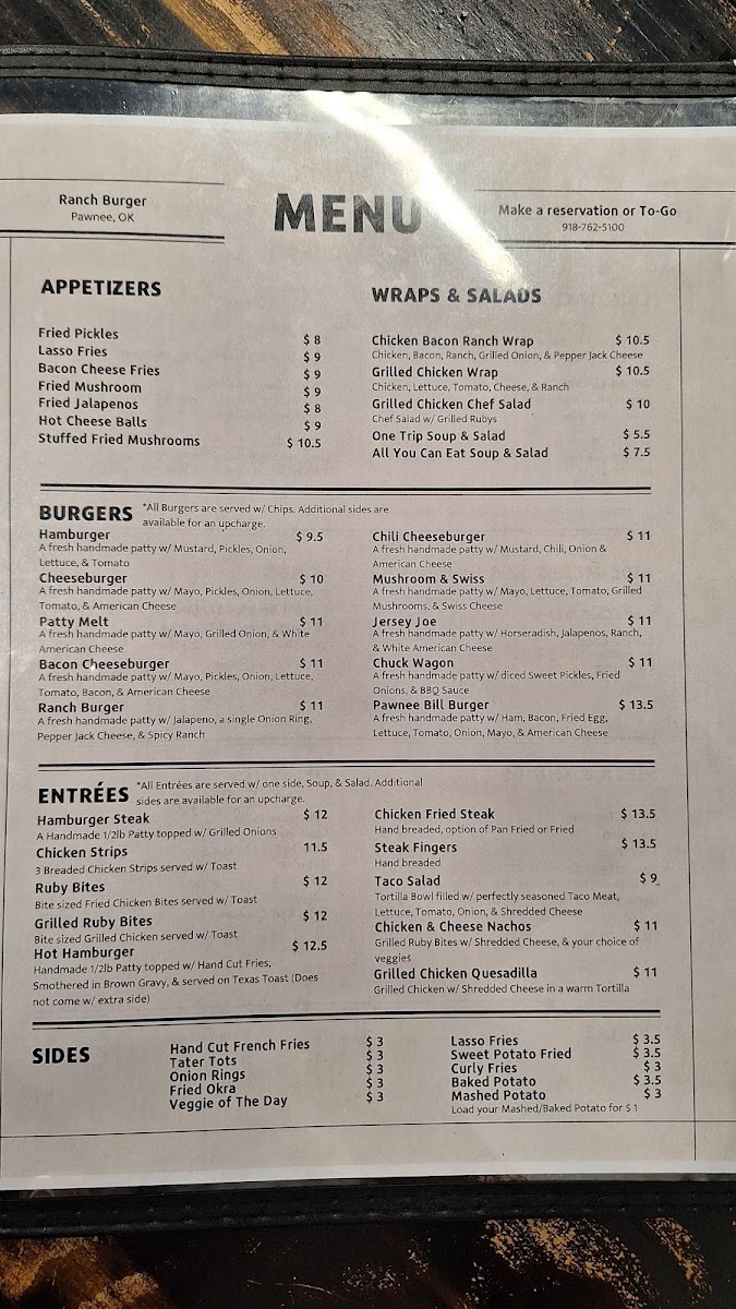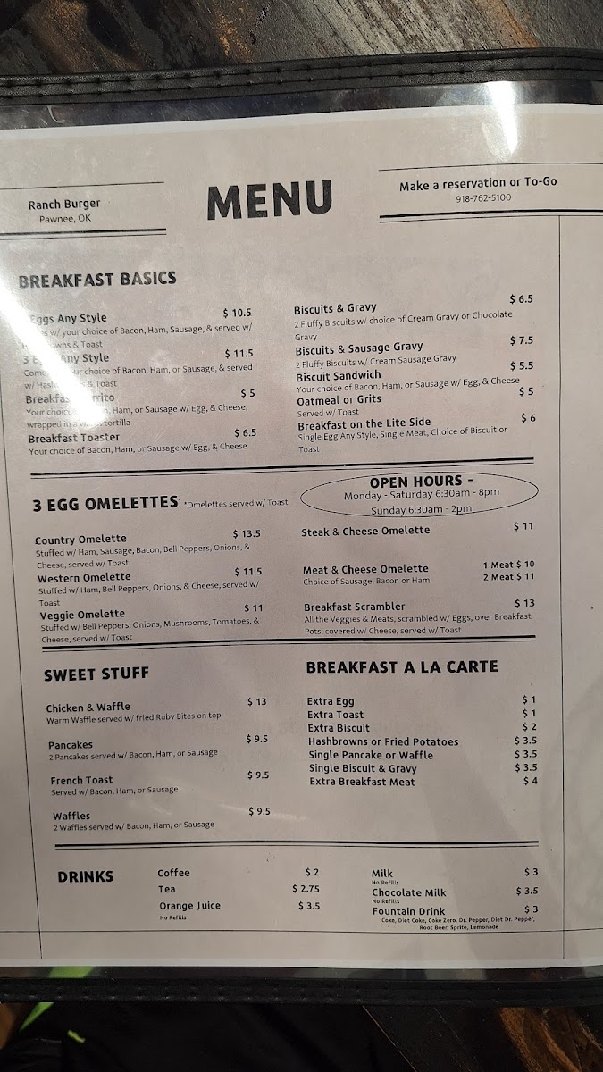 Welcome to Ranch Burger, your go-to spot in Pawnee, Oklahoma, for hearty meals and friendly service. Nestled at 405 4th St, this quaint diner offers a menu that celebrates classic American flavors with a touch of home cooking.